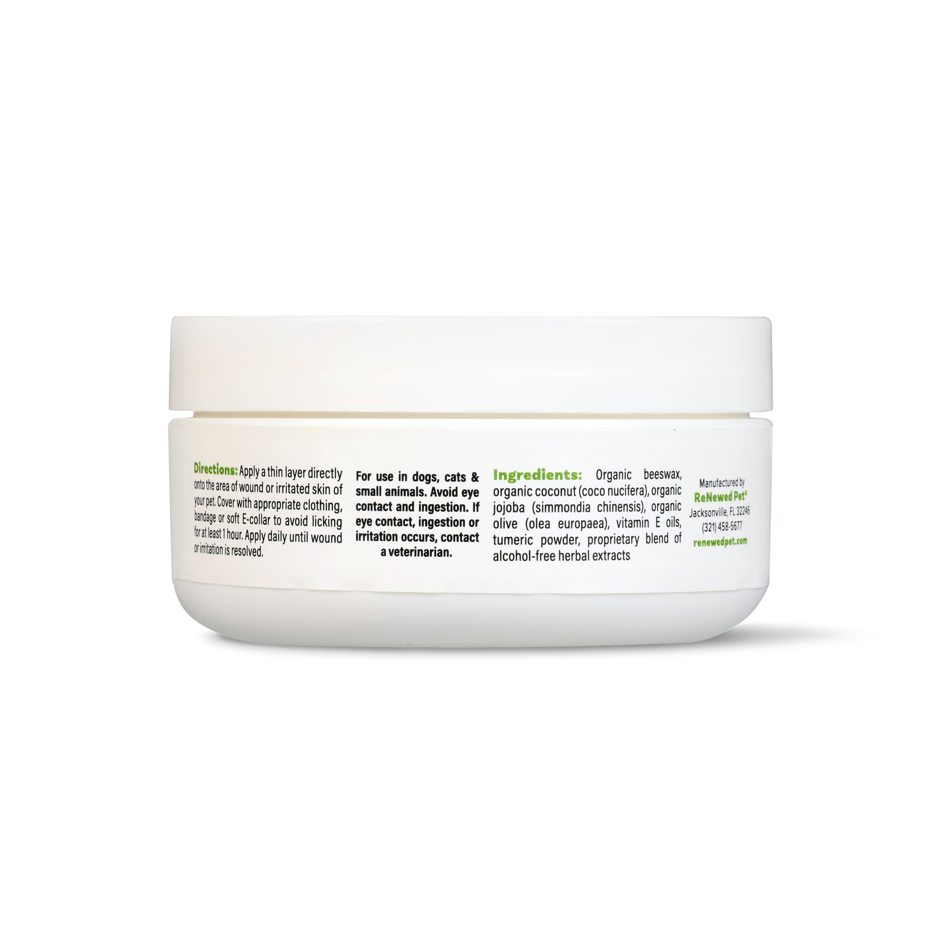 ReNewedPet® Healing Skin Salve: This all natural skin salve is made from only the best all natural, non gmo, and organic ingredients! This salve uses natural organic oils, beeswax, and specially selected healing pet-safe herbal extracts which in combination, work to naturally heal wounds from the inside out. This healing salve can be used on all breeds of pets; cats, dogs and small animals, as well as those pets with or without fur. Ideal for all heal wounds, burns, irritations, rashes and to help prevent scars from deep wounds.